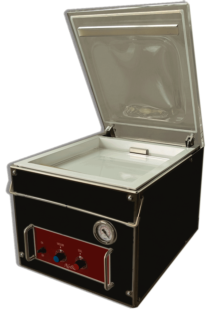 With its 65 lbs, the Nellie 112 is easy to move and to connect where electrical power is limited. Yet, it still ensure you vacuum packaging performance with the 0.6HP Busch pump and 12 inches sealing bars equipped to it.
