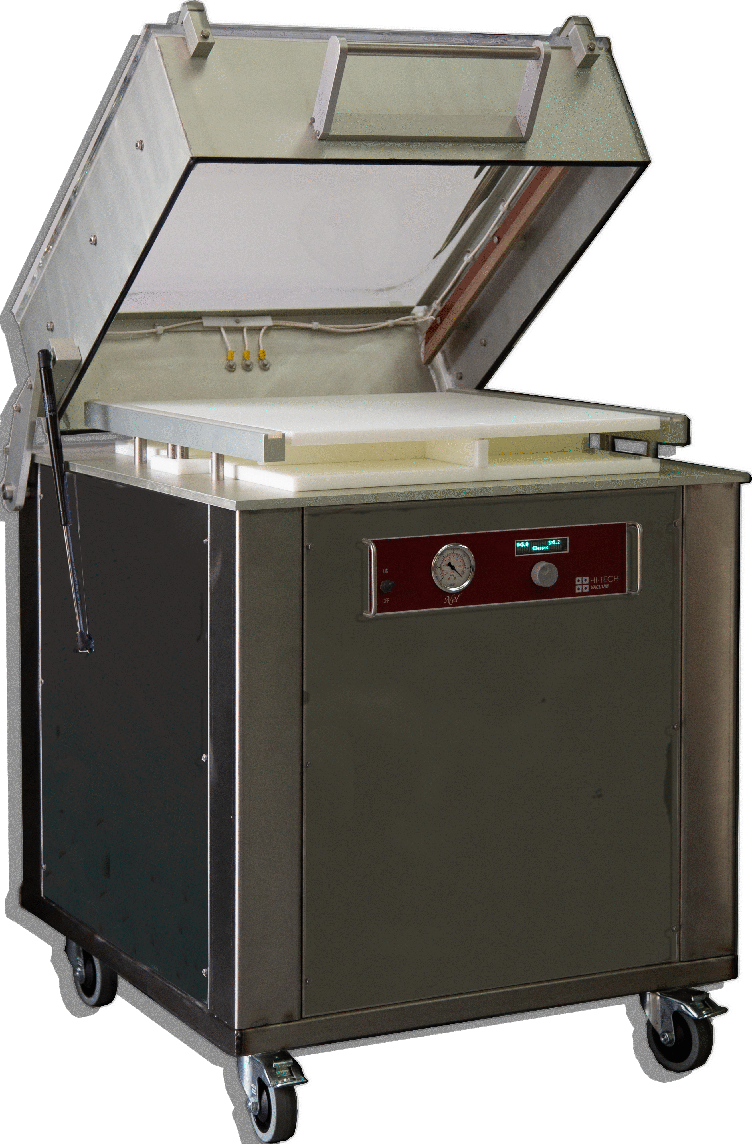 Run an efficient production line with consistent results with Hi-Tech Swing Lid models.The SW series 226 and 426 models have high capacity Busch pumps, large chambers size, long sealing bars and sturdy constructions all to meet the requirements of heavy workloads.
